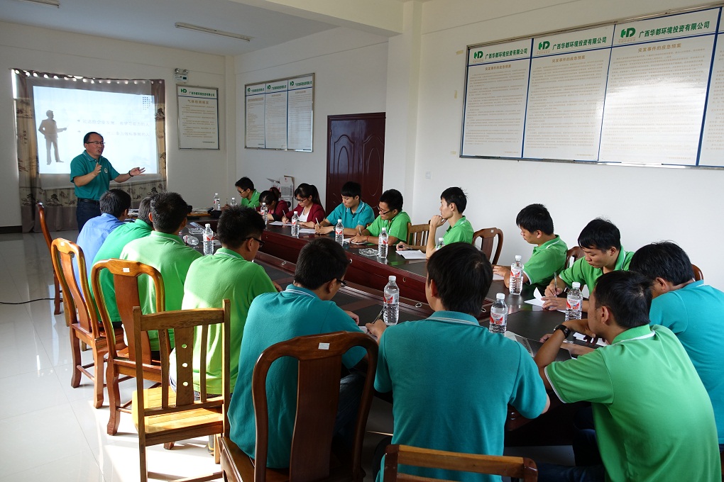 为了全面提高各分公司渗滤液处理站班长的责任心和运营管理水平,增强公司技术团队凝聚力,提升渗滤液处理技术技能;培养班长的责任心、使命感、敬业精神,总公司定于2014年10月24日至10月26日在桂平分公司开展渗滤液处理站班长工作技能培训。培训的内容包括:企业文化与发展战略、心态与执行力(态度与责任、工作能力的提升)、渗滤液处理工艺技术简介、生化处理技术简介、膜技术简介与化验技能。