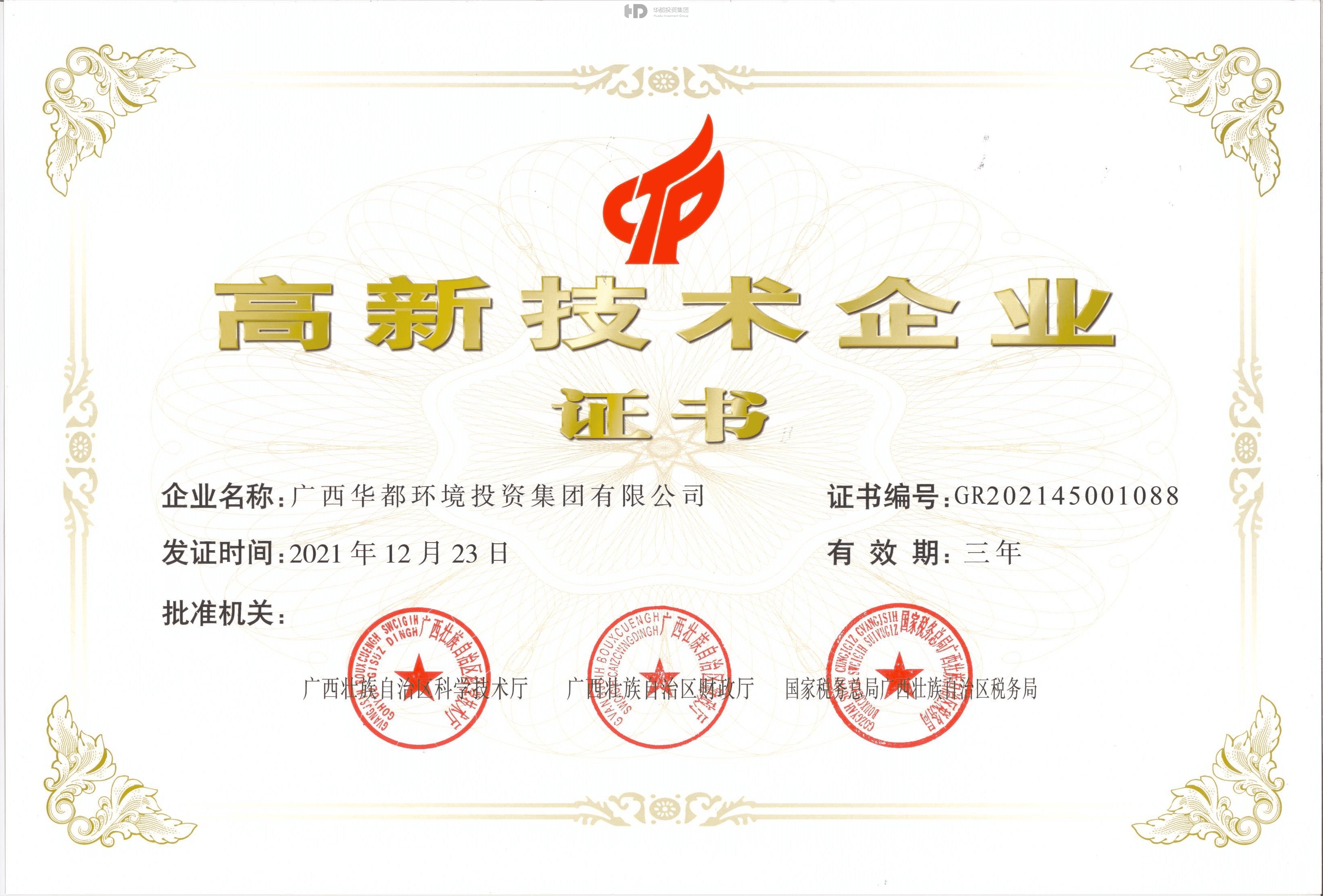高新企业证书